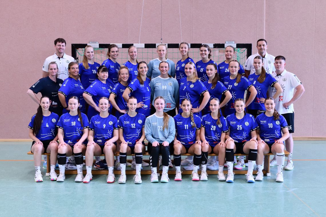 Mittlere Reihe v. l.: Ina Heckmann (Betreuerin Damen 1), Jessi Henkel, Dörte Brunke, Natascha Dummer, Charlotte Heitmann, Louisa Mausehund, Maja Gröteke, Lysanne Fuchs, Leona Hartung, Carolin Pradella, Daniel Endtricht (Trainer Damen 1)